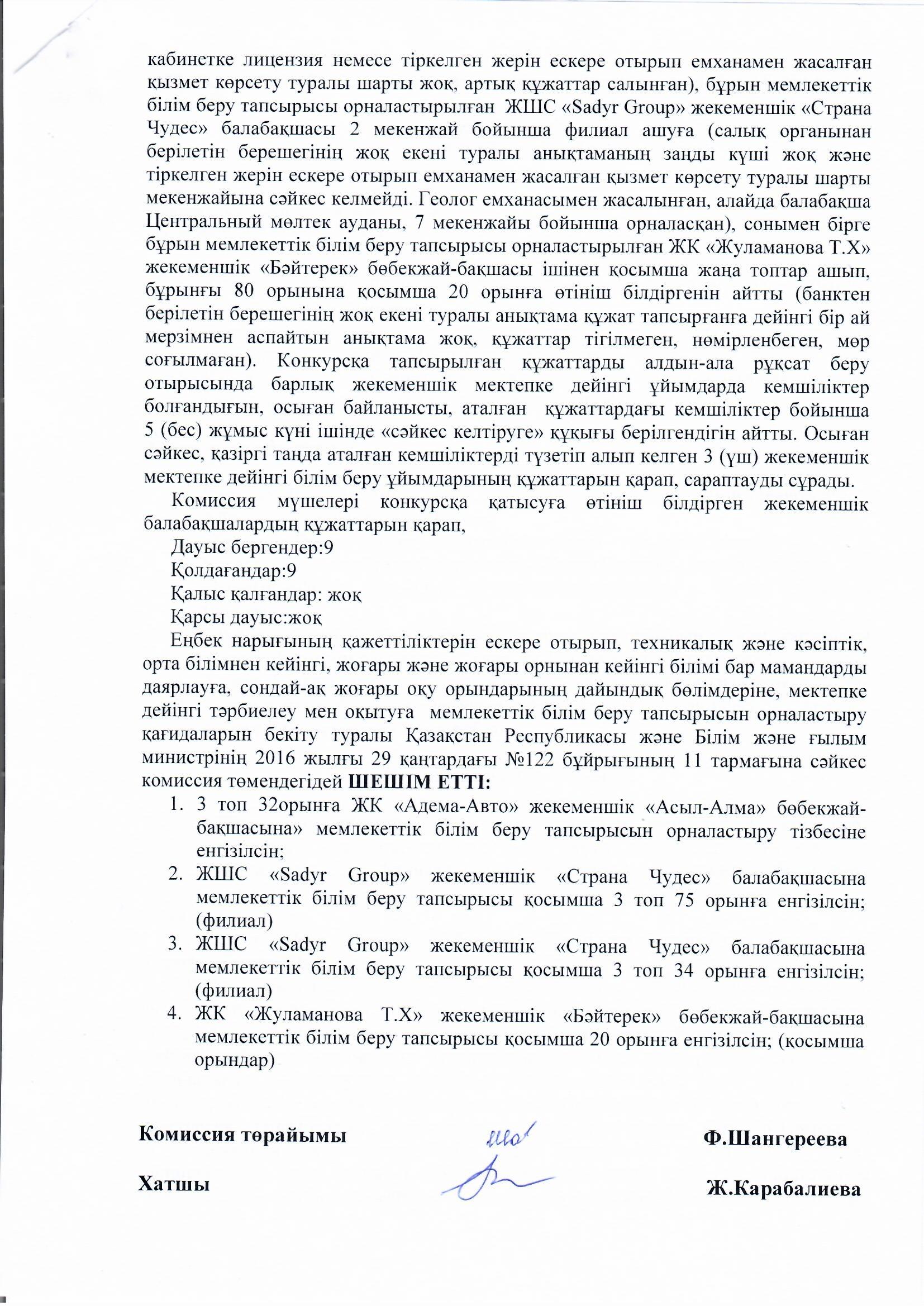 Сіздің балаңыздың балабақшада алатын білім сапасына қанағаттанасыз ба?